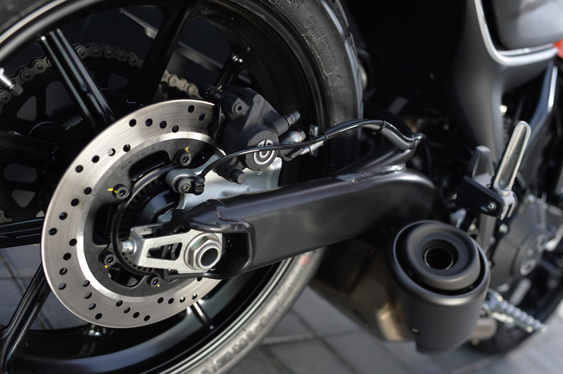 Il cambio è a sei rapporti, la frizione ha comando a cavo, minimal e funzionale, come vuole essere la nuova nata di Borgo Panigale. Il Desmodue ha una potenza di 41 cavalli a 8.750 giri e una coppia di 34,3 Nm a 7.750 giri. La manutenzione è richiesta ogni 12.000 chilometri. Il serbatoio del carburante ha una capacità di 14 litri.