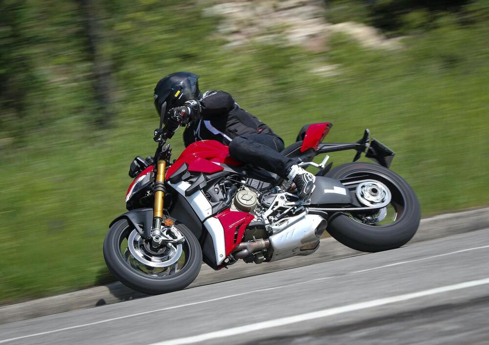 Ma torniamo a parlare di stupore. La prima presa di contatto è estremamente positiva: la Streetfighter V4 si guida come uno scooter per dolcezza e immediatezza, anche in città dove ci si aspetterebbe invece un comportamento impacciato e fisico. E non appena si esce dalla città, si scopre un mezzo che promette meraviglie: agilissima, rapida in inserimento e capisce di chiudere le curve come nessun’altra, ma con un feeling come non ricordiamo mai provato su una Ducati stradale. Incredibile il lavoro di sviluppo svolto assieme al gommista (Pirelli, per le Diablo Rosso Corsa II), perché il pensiero che dietro ci sia un 200/60 non trova riscontro in una maneggevolezza davvero impressionante.