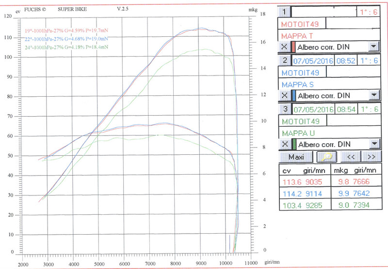La potenza massima dichiarata è di 113cv a 9.000 giri, con una coppia di 97,9Nm a 7.500 giri, il tutto senza andare a scapito dell’intervallo di manutenzione “importante” del modello precedente di 30.000km; gli interventi di controllo sono da effettuarsi ogni anno oppure ogni 15.000km.