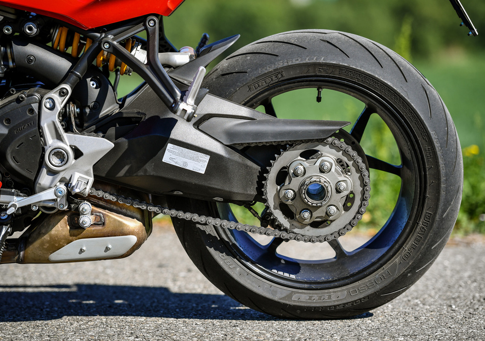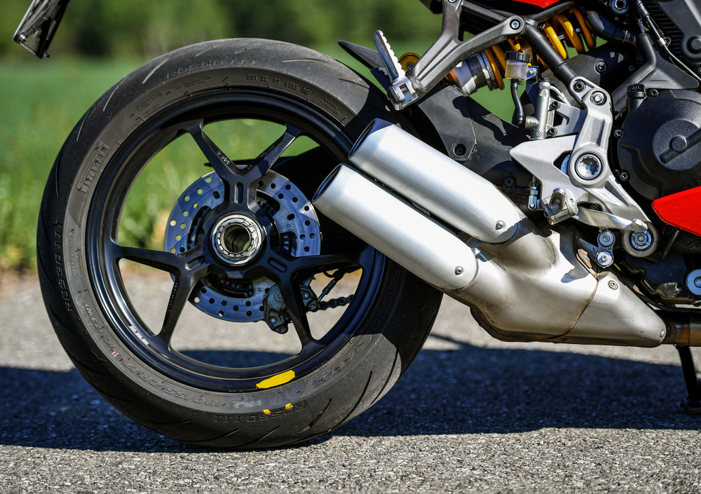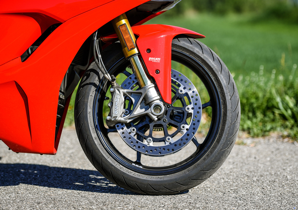 L’impianto frenante, unico invece per entrambe le versioni, conta su due pinze monoblocco Brembo M4.32 e dischi da 320mm di diametro, con pompa convenzionale e leva regolabile su 5 posizioni. Le gomme di primo equipaggiamento sono le Pirelli Diablo Rosso III, scelta più che condivisibile e che permette di sfruttare a fondo la ciclistica della SuperSport.