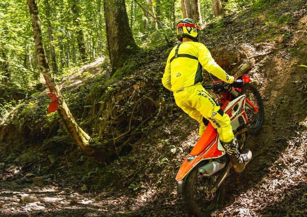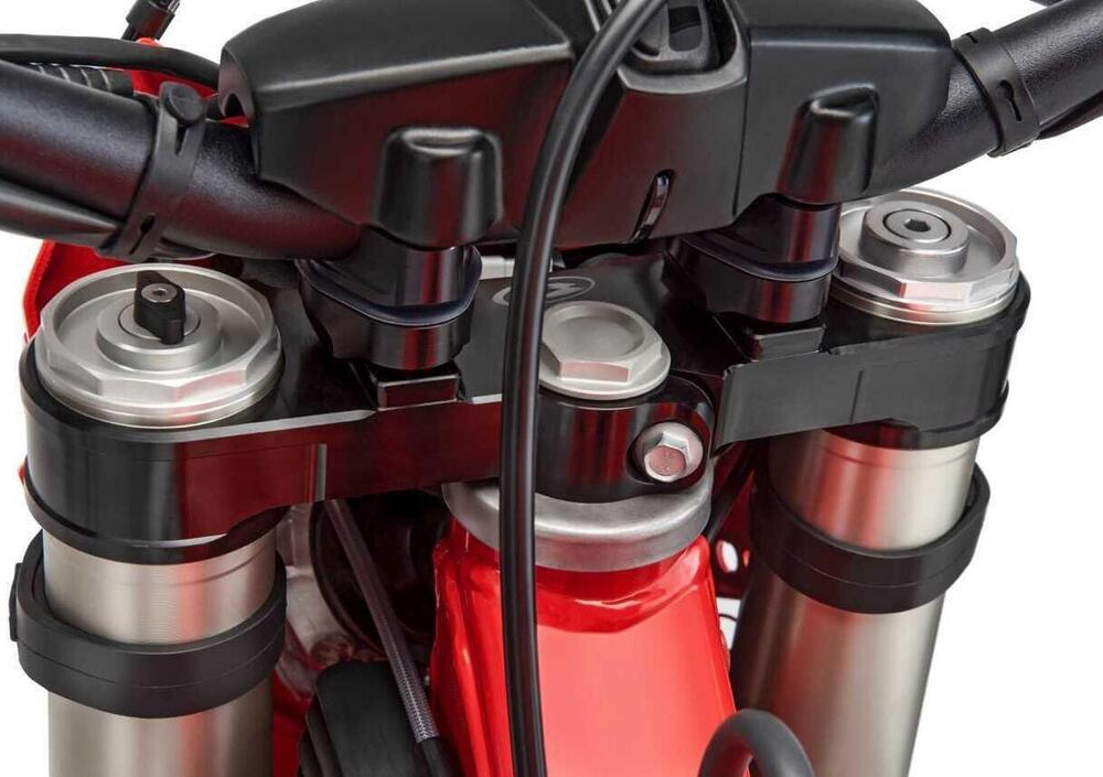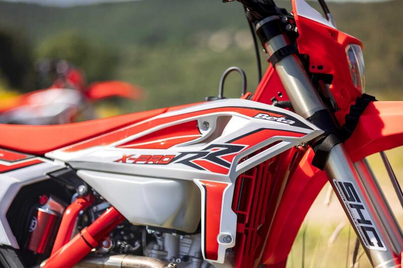 Il telaio, ereditato dalla gamma cross, è più ampio di un centimetro nella zona del cannotto di sterzo, offrendo maggior stabilità e controllo. Gomme Maxxis, freni Nissin e comandi Domino marchiati Beta, assicurano che ogni componente sia al top della categoria. Le nuove plastiche e la grafica della moto spiccano per il loro design innovativo e aggressivo, conferendo alla moto una personalità unica.