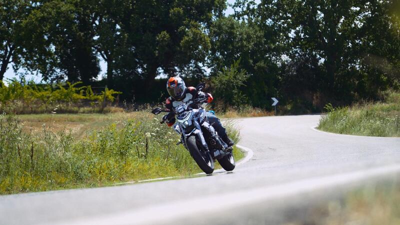 Protagonista immediato è il motore: fin da subito fa sentire la propria verve, con un'erogazione piena fina di 2000 giri che consente di arrivare (almeno su questa versione da 50 cavalli) fino a 12.000 giri senza cali di spinta o di perdita di carattere. Veramente una gustosissima unità, con anche un bel rumore di scarico che aggiunge quella nota in più che aumenta il piacere di guida, sia andando a spasso che quando si va a cercare la piega nelle colline vicino Rimini, contesto dove abbiamo portato la 450NK per saggiarne le capacità ciclistiche e di fun factor.