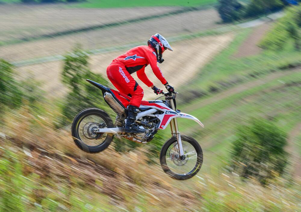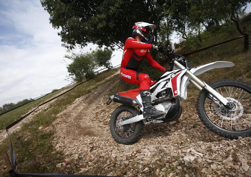 Gli impianti frenanti Nissin rendono il comparto frenante preciso e soprattutto progressivo. Sulla pista dura del test, questo aspetto è stato molto importante. Anche come gomme troviamo il top disponibile sul mercato con Pirelli Scorpion sulla gamma cross e Metzeler Six Days sulla linea enduro. Ultima nota, ma non meno importante, la storica partnership con Arrow per gli impianti di scarico che equipaggiano l’intera gamma 2 e 4 tempi per un sound ed una prontezza da riferimento.