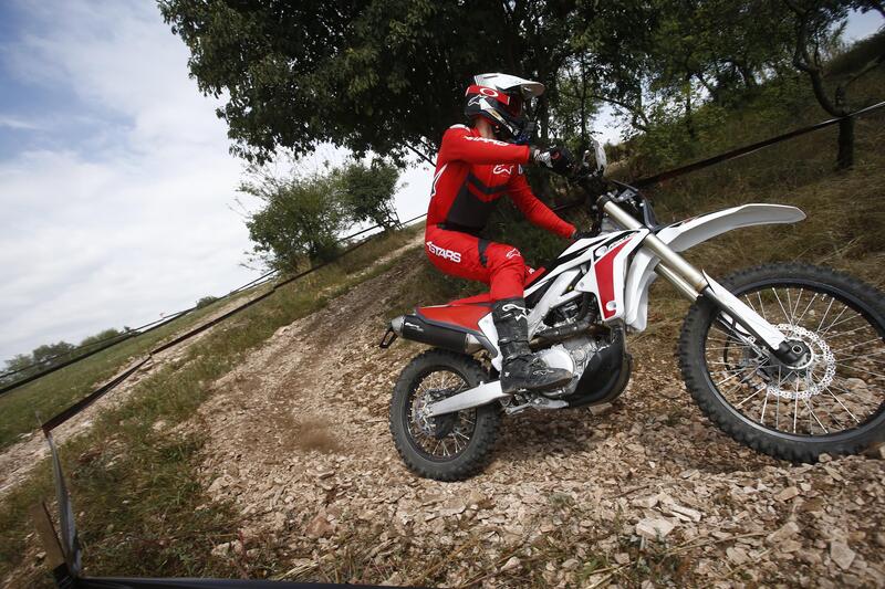XXF 450:Tra tutte è come di consueto la più impegnativa, in grado di trasmettere emozioni forti e prestazioni elevate. Pur rimanendo facile da guidare e sensibilmente sicura, è uno strumento che ti fa andare davvero forte e ci devi prestare la massima attenzione. Con una guida precisa e progressiva riesci ad ottenere il meglio da lei. Lineare negli inserimenti ed ottima nella trazione in uscita, l’ho percepita un pò molla di mono nei tratti veloci in piedi dove tende a sedersi e diventare sì stabile, ma altrettanto leggera all’anteriore.