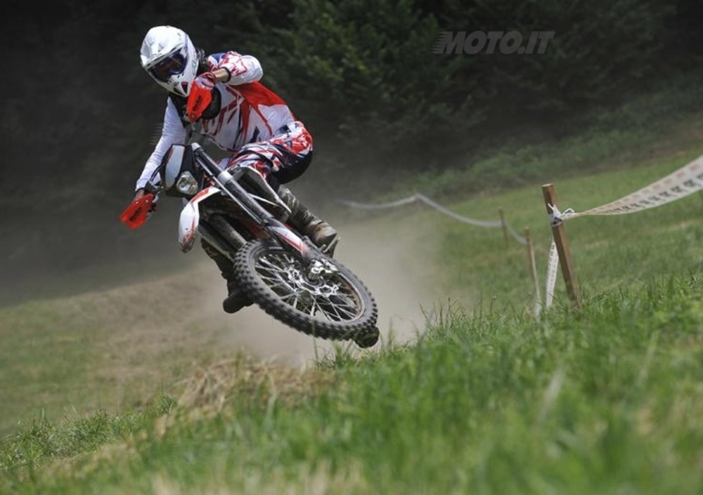 Il setting iniziale, impostato dalla casa, prevede un pilota medio di 80kg ed un utilizzo molto endurustico e quindi, a mio avviso, appare inizialmente un po’ morbida, in particolar modo di molla. Il vantaggio è che nei tratti impervi e sugli ostacoli come pietre e radici, la prima parte della corsa è molto sensibile e lavora veramente bene assorbendo la maggior parte dei colpi, ma nel caso di un’andatura più elevata, come di una staccata più violenta, il davanti scende velocemente, andando a lavorare subito nella parte centrale dove invece è sostenuta, tendendo poi a volte a trasmettere al pilota un effetto di sottosterzo. Ad ogni modo, grazie al catalogo aftermarket di cui ora tutte le case si stanno dotando, è possibile acquistare eventuali molle aggiuntive, a prezzi veramente competitivi. Stesso discorso vale per le protezioni motore, paramani e quant’ altro necessario all’uso della moto.
