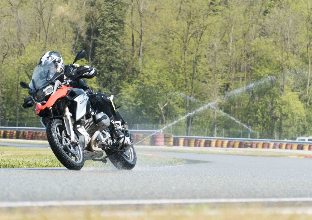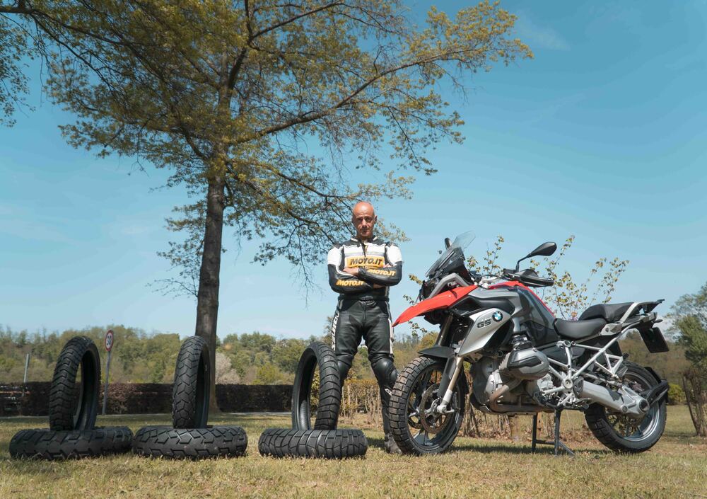 Abbiamo montato le gomme sulla BMW R1200GS (scelta obbligata, essendo la moto più venduta del segmento) e abbiamo percorso 5 giri cronometrati con ciascun treno, estraendo a sorte l'ordine del test.
