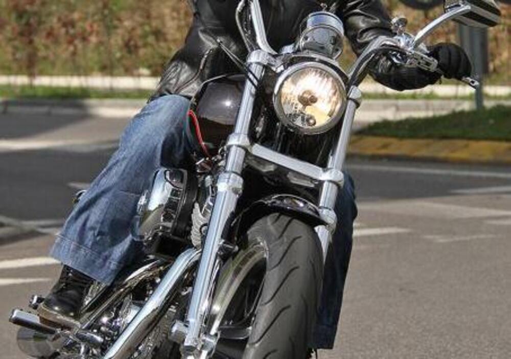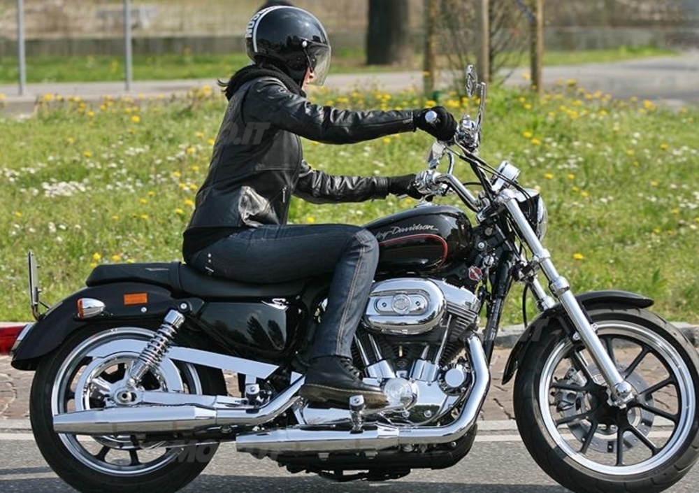 Trasmette sicurezza sia nelle manovre da fermo, quando la sella a 695mm da terra dà una gran mano ai meno alti e forzuti, così come in marcia: il suo V-Twin Sportster Evolution da 883 cc ha un ampio arco di erogazione, proprio per facilitare le partenze e le curve alle basse velocità, punti sempre critici nei primi approcci alla guida. Il tutto è facilitato da una ciclistica dedicata, composta da una forcella Showa da 39mm con escursione di 108mm e da ammortizzatori posteriori regolabili nel pre-carico con escursione di 54mm.