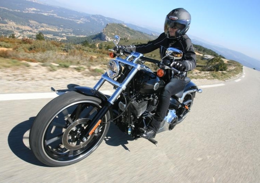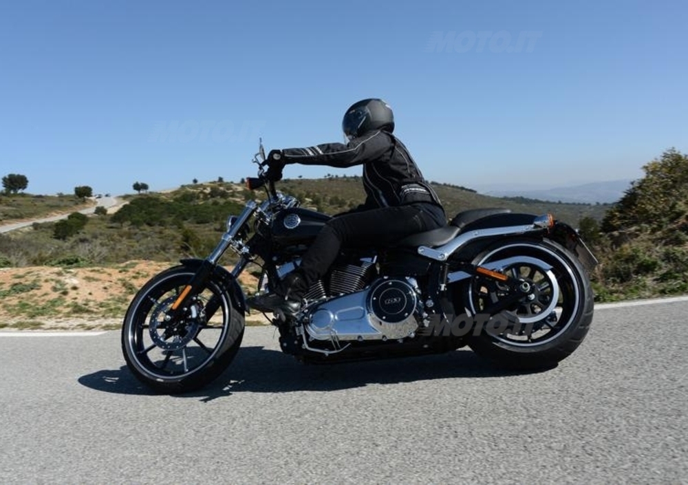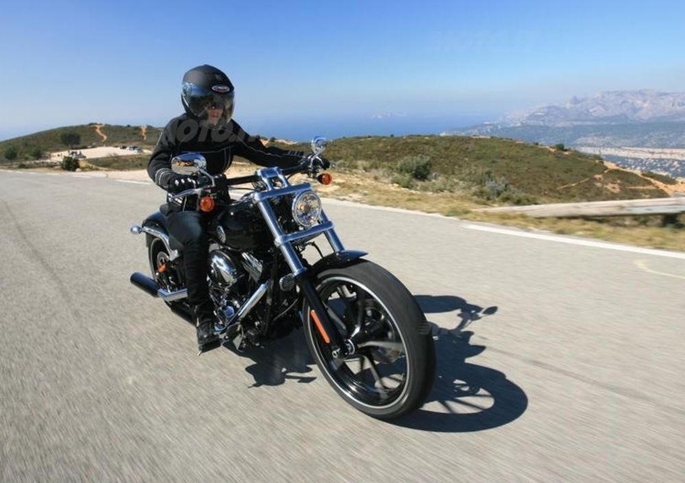 E invece se la si prende con una certa decisione e si fa leva sul grande manubrio, complice anche la coppia del potente propulsore, la Breakout tira fuori i muscoli (e noi con lei) e si inerpica anche su tratti insidiosi, forse più adatti a un motard che a una long custom come questa.