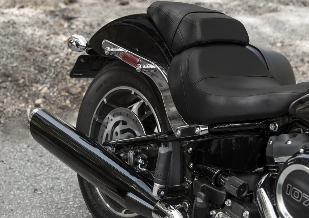 A proposito di praticità: la capacità complessiva delle due borse è pari a 25,5 litri. Si può però aggiungere ulteriore carico grazie all’installazione di uno schienalino sissy-bar, di un portapacchi o di un rack di montaggio per Tour-Pak, tutti accessori dotati del sistema a scancio rapido brevettato HoldFast, disegnato specificamente per la nuova piattaforma Softail. Di serie inoltre troviamo una porta USB, l’avviamento keyless (senza chiave) e il sistema di antifurto Harley-Davidson Smart Security.