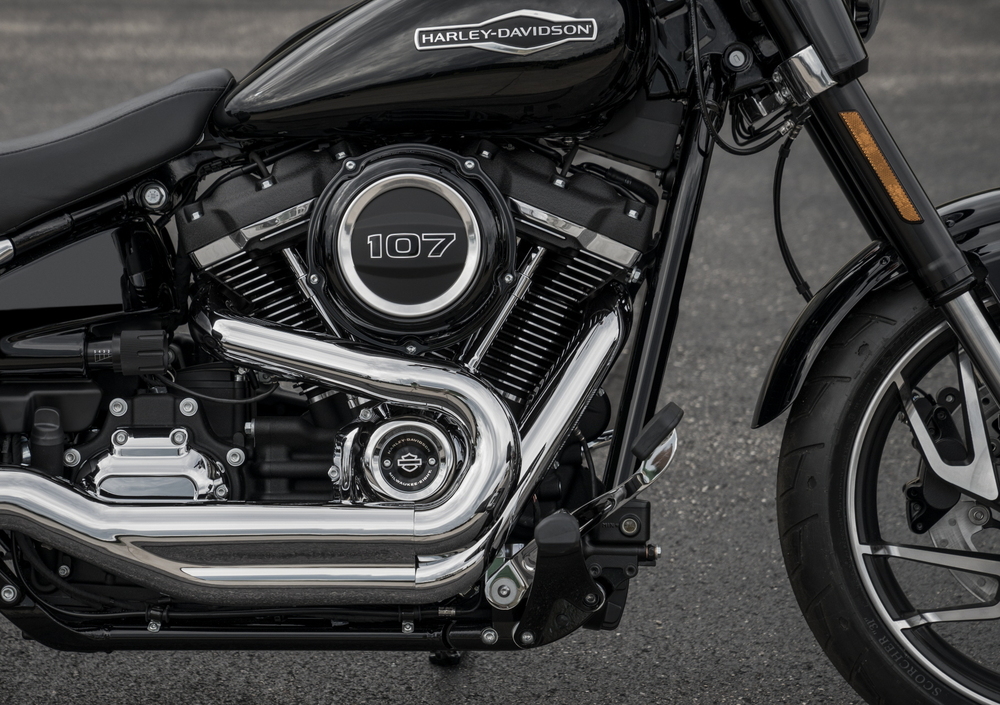 Il motore della Sport Glide è il Milwaukee-Eight 107, figlio della nona generazione di motori “big twin”. Grazie a un alesaggio di 100 mm e una corsa di 111, ha una cilindrata di 1.745 cc, con rapporto di compressione di 10:1. Per quanto concerne il valore di coppia massima, è di 145 Nm e viene raggiunto a 3.250 giri.