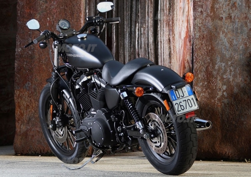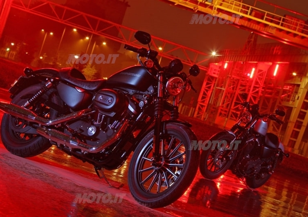 Tutto quello che avete appena letto l’abbiamo ovviamente immaginato come una sorta di “brain storming” registrato a Milwaukee, con il leggendario Willy G. Davidson impegnato con i suoi collaboratori a inventare un nuovo modello dall’immagine particolarmente allettante per chi volesse avvicinarsi all’affascinante mondo Harley senza spendere troppo. E spiega praticamente la filosofia della famiglia trasversale Dark Custom, comprendente appunto la Sportster Nightster, Le Softail Night Train e Cross Bones, le Dyna Fat Bob e Street Bob e la potente VRSC Night Rod Special, e oggi arricchitasi con la nuova Iron 883, nella versione completamente nera. Anche quella con la carrozzeria argento opaco, però, ha il suo bravo perché.