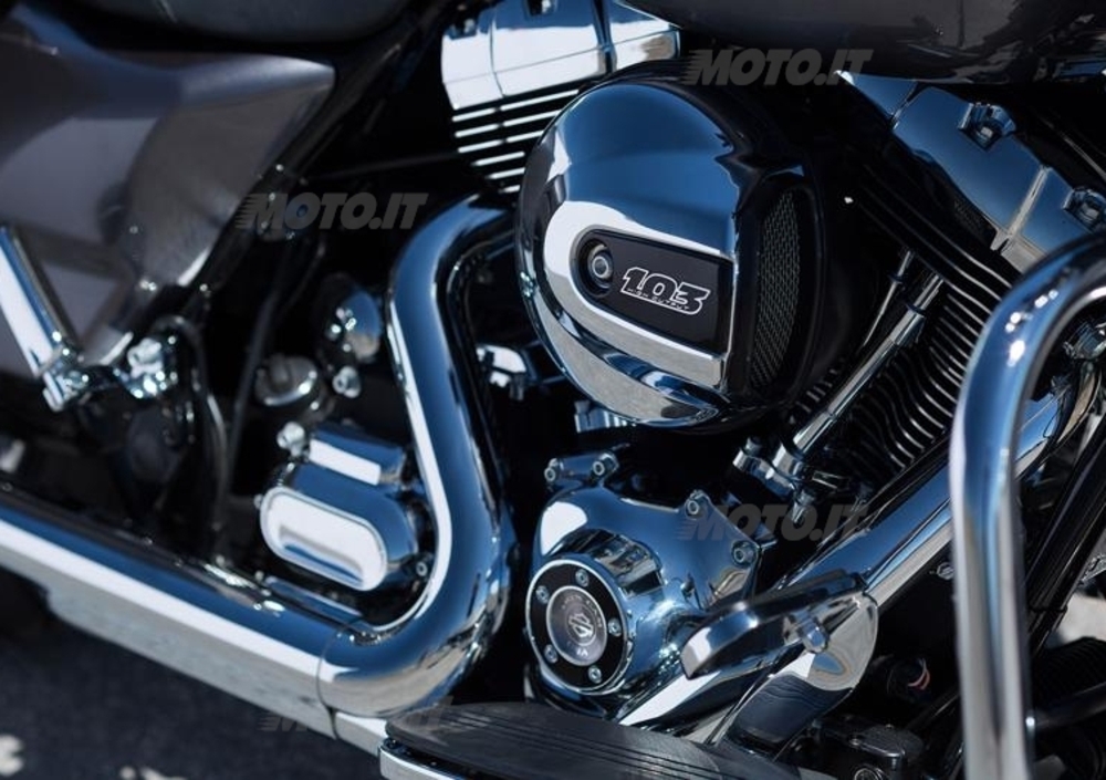 Dopo il profondo lavoro di rivisitazione portato sulla gamma 2011, le Touring compiono ora un ulteriore, grande balzo in avanti. Il rinnovato bicilindrico High Output Twin Cam 103 conserva (potrebbe essere altrimenti?) il tradizionale schema a valvole in testa con distribuzione ad aste e bilancieri, laddove il numero 103 (pollici cubi), esibito con orgoglio sui coperchi dei filtri dei condotti dell’aria, al cambio nostrano si concretizzano in 1.690 mirabili cc. Cilindrata che è frutto dei due pistoni da 98,4 mm che si muovono per una corsa quasi infinita di 111,3 mm. Il tutto, abbinato al cambio separato Cruise Drive a 6 marce e alla trasmissione finale a cinghia dentata.