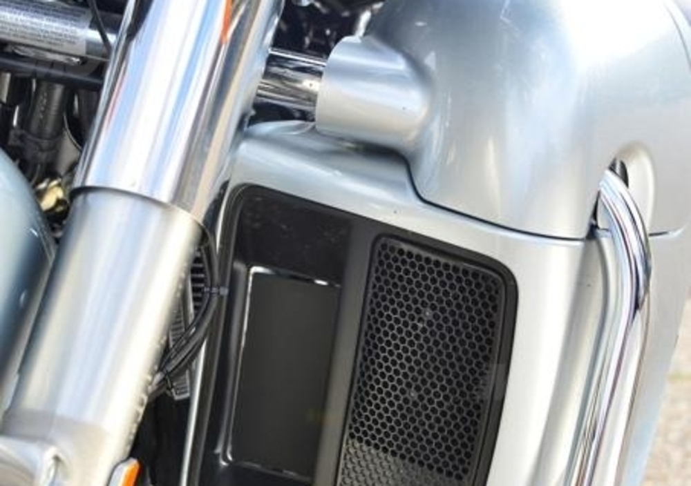 Qui il concetto touring è messo subito in chiaro: il parabrezza nasconde una strumentazione classica ma pienamente efficiente, con i quattro indicatori circolari analogici che riportano i dati su livello carburante, velocità, regime del motore e carica elettrica, con informazioni ulteriori assicurate dalla finestra elettronica sul tachimetro. Ma a dominare la scena è ora lo schermo touchscreen da 4,3” con pannello a colori, porta USB e connettività Bluetooth, che assicura un livello inedito di comfort e assistenza durante la guida, potendo contare su un impianto stereo Arman-Kardon la cui potenzialità sonora non teme la concorrenza del pur tonante bicilindrico che muove la moto. Si può andare a tutta velocità accompagnati dalla Cavalcata delle Valchirie, cullati da una morbida ballata di Neil Young o spinti dalla voce roca del Boss.