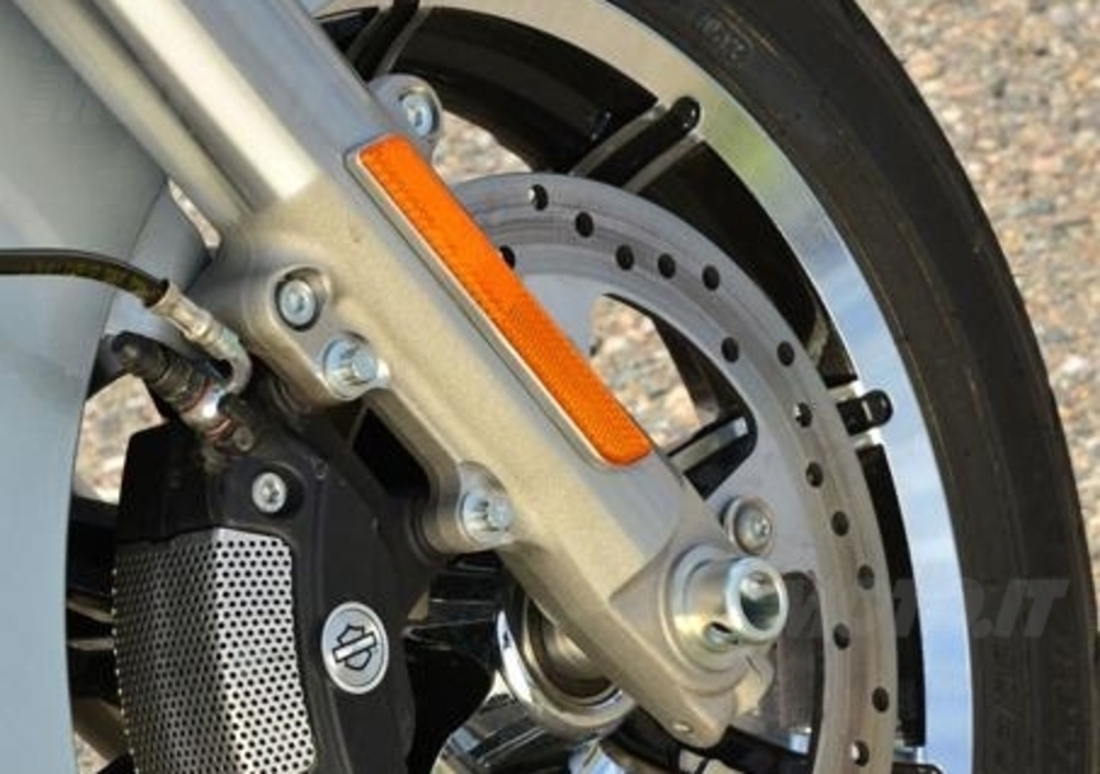 Ancora, tutte le Touring 2014 sono dotate d’impianto frenante Brembo a tre dischi con ABS di serie, reso più performante con l’introduzione del sistema di frenata combinata, gestito da centralina elettronica Bosch e attivo sia agendo sulla leva al manubrio che sul pedale. Migliora, e di molto, l’efficienza luminosa, grazie all’introduzione di proiettori a LED di maggior potenza, soddisfacendo in questo modo una precisa richiesta venuta dall’utenza. Una delle tante innovazioni introdotte grazie al Rushmore Project.