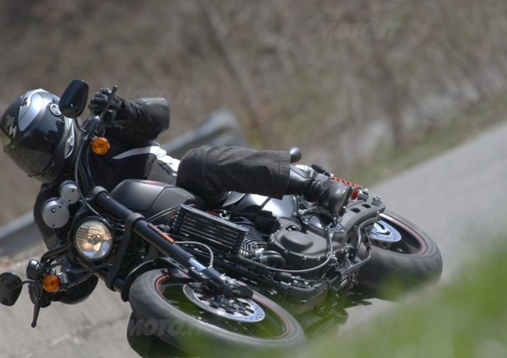 La posizione di guida è molto caratteristica, con il busto eretto e le braccia comodamente appoggiate al manubrio, mentre le pedane arretrate consentono alle gambe un’angolatura poco affaticante, però con le ginocchia un po’ basse rispetto al serbatoio che, essendo molto affusolato, è difficile stringere tra le cosce: stile Superbike americane degli anni settanta/ottanta, insomma, quando i piloti correvano senza carena e con i manubri alti. La sella non è un mostro di comfort come imbottitura, tuttavia offre una buona base d’appoggio che non massacra anzitempo i glutei (e qui gioca anche l’autonomia media non certo da granturista, compresa tra i 150 ed i 200 km).