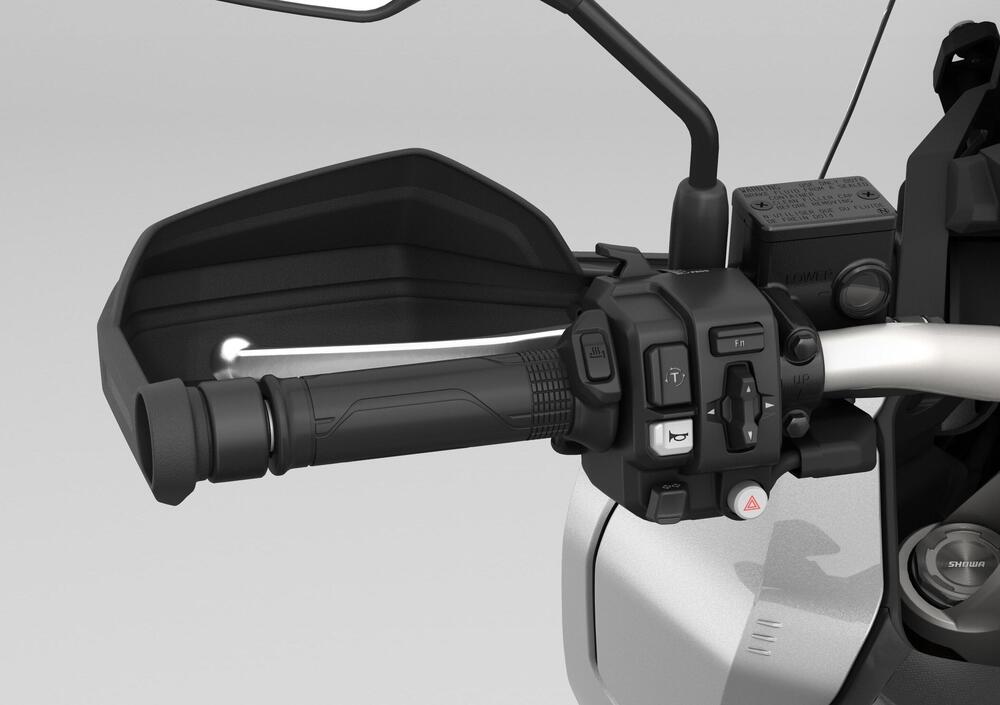 La dotazione è da prima della classe e parte da un impianto di illuminazione Full LED che fa il paio con un display LCD che integra la connettività Honda Smartphone Voice Control System con la quale gestire chiamate, navigazione e musica attraverso i comandi vocali sull'interfono e l'app Road Sync scaricabile gratuitamente. È un sistema efficace e comodo che avevamo già incrociato, ad esempio, sulla Neo Sports Café CB1000R e, al momento, è disponibile soltanto per cellulari Android dalla versione 8.0 alla 10. Non è necessario, dato che non è integrabile con Android Auto come invece per l'Africa Twin, connettere fisicamente attraverso il cavo USB lo smartphone per utilizzare tutte le funzioni del sistema HSVC Honda.