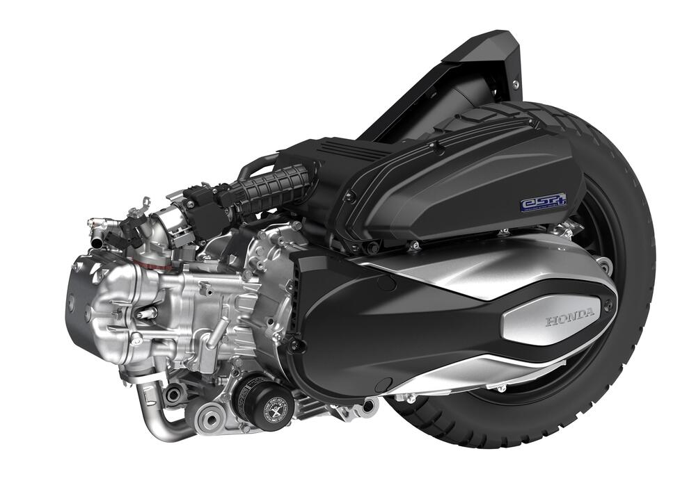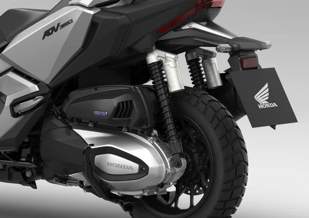 Mutuato dal Forza 350, il motore dell'ADV 350 è un monocilindrico monoalbero SOHC di 330 cc eSP+ (enhanced Smart Power+) a quattro valvole azionate da bilancieri a rullo, che vede una notevole cura nella riduzione degli attriti interni attraverso soluzioni come la presenza della pompa di recupero dell'olio (che contribuisce a ridurre le perdite per pompaggio) e il cilindro disassato di 5 mm, oltre a tutti quei dettagli che sommati fanno la differenza come il getto d'olio sotto il cielo pistone che aiuta nello smaltimento del calore e contribuisce a migliorare l'efficenza della combustione, soluzione comune anche alla sportivissima Fireblade. Già che ci siamo: il circuito dell'olio contiene 1,8 litri.