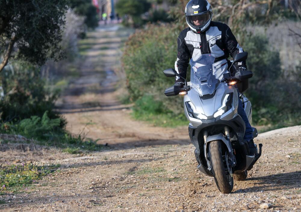 Il comportamento delle sospensioni è da moto vera: solida e progressiva la forcella cui non abbiamo risparmiato nulla compresi gli scalini dell'asfalto a manetta, le staccate micidiali in discesa e tratti molto sconnesi. Niente: i due steli Showa non hanno nemmeno sofferto di un fondocorsa, un'incertezza, nulla di nulla, mostrando una taratura confortevole ma rigorosa quando necessario per tenere a bada i 186 kg dell'ADV 350. Al posteriore i due ammortizzatori hanno invece mostrato un punto di attacco più rigido e reagiscono in modo più secco sulle asperità impulsive: per contro, tale scelta regala un ottimo comportamento dinamico quando si vuole alzare il ritmo sulle statali ma in ogni caso la stabilità è sempre garantita anche se si chiede all'ADV 350 di attraversare - senza pretendere prestazioni da CRF - qualche sterrato con dossi, buche e pozzanghere.