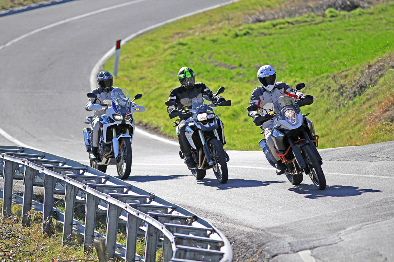 Il prezzo parte dai 12.400 euro della versione senza ABS. La moto della nostra prova dispone di colorazione speciale tricolor e ABS con controllo di trazione. Il prezzo sale a 13.200 euro e comprende i paramani e gli attacchi integrati delle borse. Ci pare una quotazione interessante, tenuto conto della novità del prodotto. Le sospensioni sono regolabili. Per l’uso prettamente stradale è invece una pecca l’adozione di cerchi a raggi con camera d’aria. È l’unica moto della nostra comparativa a vantare la versione DCT con cambio a doppia frizione (utilizzabile anche in modalità automatica e offroad).