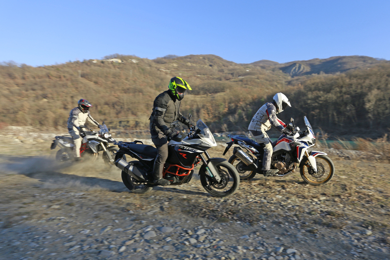 La Honda non ha mai puntato tutto sulla carta delle prestazioni. Eppure il suo motore ha il giusto carattere e sopra i medi sa divertire. Le prestazioni la collocano, ovviamente, tra le due contendenti europee. All’Africa Twin difetta un po’ di allungo agli alti regimi e, complice una sesta piuttosto lunga, la sua corsa si ferma a 200 km/h effettivi a 6.800 giri. Nella media anche il peso, pari a 219 kg a secco.