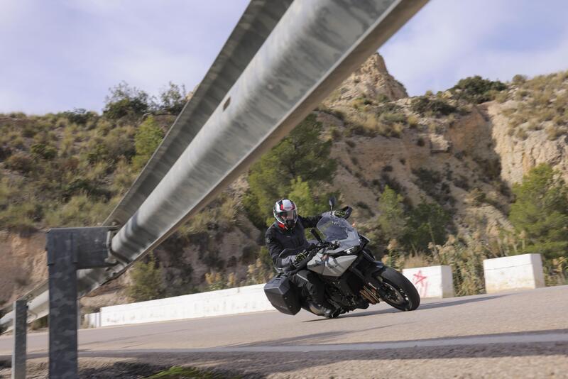 Una piacevole sorpresa è l’ottimo lavoro delle sospensioni elettroniche. L’assetto è sempre preciso, i trasferimenti di carico controllati e la moto permette di disegnare linee precise con grande facilità. Non è una moto dotata di una eccessiva velocità in inserimento, è piuttosto rotonda, abbastanza “alta” sull’anteriore. Questo la rende perfetta per una guida turistica ma di profitto, con lei è facile andare forte, ma anche prendersela comoda per ammirare il panorama e “cillare” un pò. L’intervento delle sospensioni adattive assicura una risposta costante e un’ottima stabilità anche nelle fasi più impegnative della guida. Buoni i freni per modulabilità e potenza frenante. Bello anche il cambio, sempre preciso negli innesti non perde un colpo.