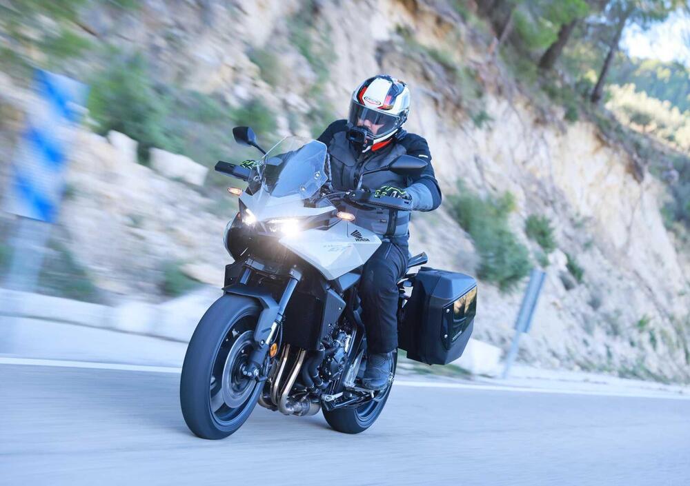 Il design è pulito e filante grazie a linee tese che proiettano i fianchetti laterali in avanti e avvolgono il serbatoio da 21 litri; bello il frontale, il richiamo alla serie fireblade è evidente, anche in questo caso a voler richiamare lo spirito sportivo della moto. La parte posteriore integra molto bene le valigie laterali (comprese nella dotazione di serie), non troppo sporgenti e capaci di offrire una capacità di carico totale di 65 Litri.