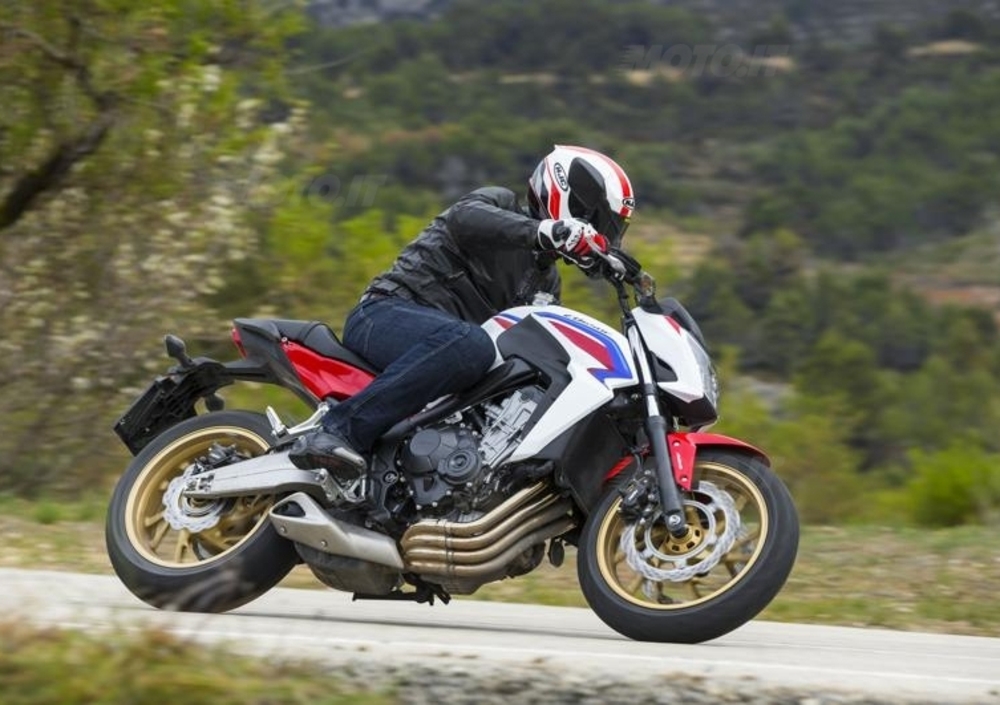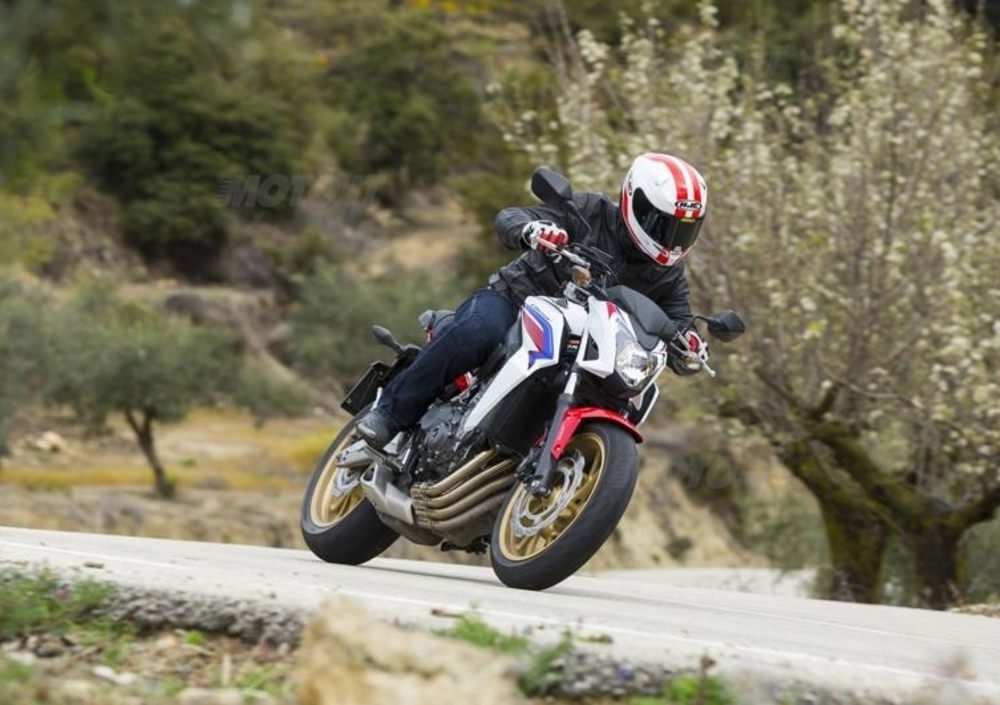 La Honda è figlia di un progetto inedito, che nulla spartisce con la Hornet tanto per capirci. Mentre su questa il motore era derivato dallo sportivo 4 cilindri della CBR600RR, sulla CB è specifico. Meno aggressivo, privilegia la pienezza ai bassi e il contenimento dei consumi. E' un bialbero 16 valvole con iniezione elettronica e cambio a 6 marce. La potenza massima è di 87 cavalli a 11.000 giri, con la coppia che raggiunge i 63 Nm a 8.000 giri. Nasce per essere montato su una moto senza carena, come dimostra la grande pulizia esteriore: non ci sono cavi e tubi in vista, persino il filtro dell'olio è in posizione riparata.