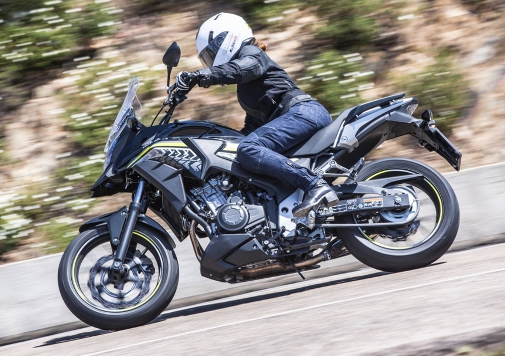 Rispetto al modello precedente, la nuova CB500X ha un'aria ancor più adventure, col frontale ridisegnato, il nuovo faro a LED e il plexi più alto di 10 cm e regolabile (manualmente) su tre altezze. La forcella telescopica da 41 mm è ora regolabile nel precarico, la leva freno è personalizzabile nella corsa su 5 posizioni e il serbatoio aumenta la sua capienza portando a 500 i chilometri percorribili con un pieno di carburante. Il serbatoio cresce (da 17,3 a 17,5 litri) e guadagna un bel tappo incernierato, ma i consumi scendono e si fissano su un ottimo 29,4 km per litro.