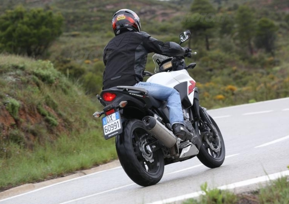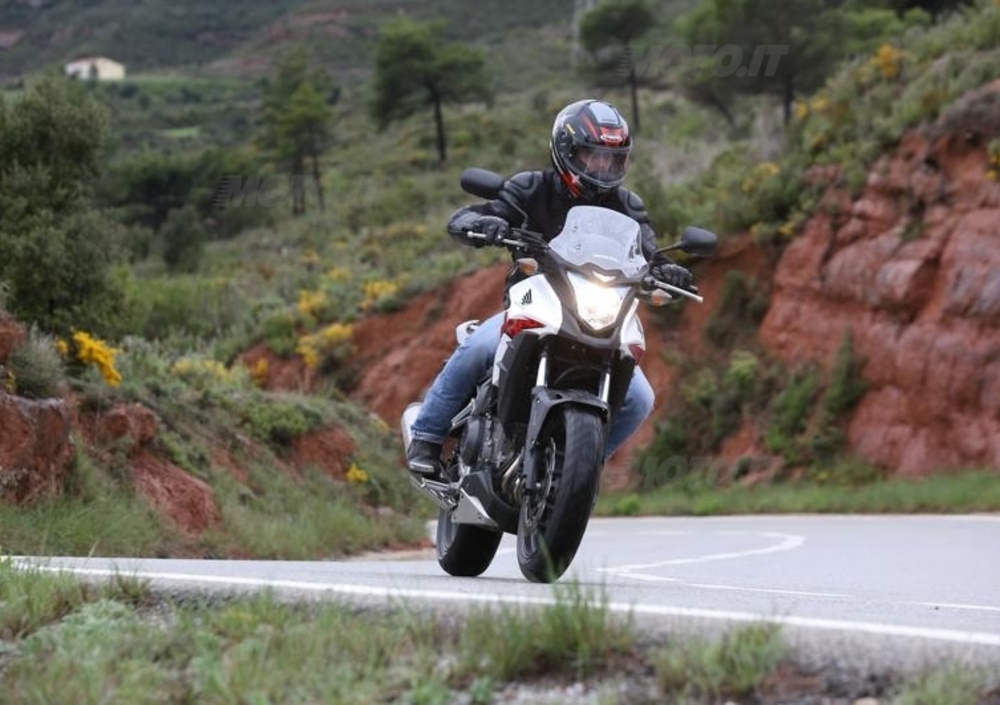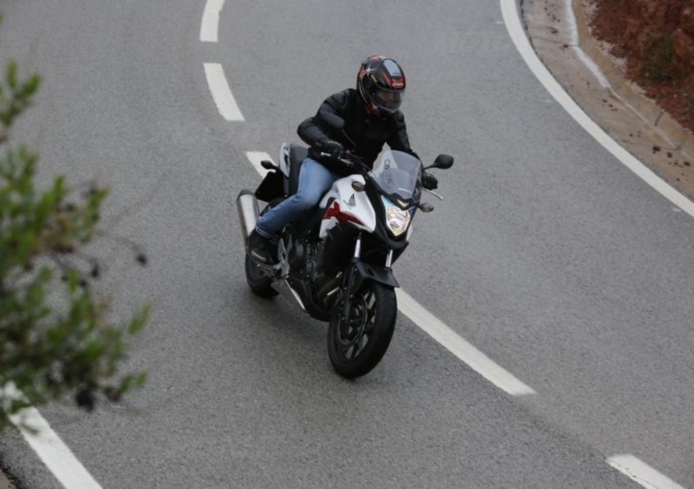 Non ha picchi di potenza particolarmente avvertibili nel corso dell’escursione dalla fascia bassa a quella alta del contagiri e concorre con la ciclistica ad infondere quella sensazione di confidenza e bilanciamento che poche moto sanno trasmettere ai neofiti e non solo. Il bicilindrico 500 risponde dolcemente ai richiami del gas e risulta inoltre essere pronto e pieno sin dai bassi regimi. Scontato per un bicilindrico? Forse, ma se questo è vero lo è altrettanto il fatto di non essere così scontata la pressoché totale assenza di vibrazioni, così come non è scontata anche l’omogeneità della sostanza, dicasi coppia e potenza, percepita. Certo, l’architettura dell’unità nipponica è in linea e non a V, eppure l'erogazione è insieme regolare e di carattere, una fatto non così frequente in questa classe di cilindrata. Quasi da motore ancora poiù frazionato. Tanto equilibrio motoristico è corrisposto da un'altrettanto calibrata ciclistica. Il retrotreno si dimostra ben tarato e l’avantreno infonde sicurezza. L’unica pecca è costituita dall’assenza di un secondo disco del freno; non che l’impianto che equipaggia la CB500X pecchi di efficacia, dimostra anzi un’elevata modulabilità ed un’accettabile potenza mentre l’ABS non è invasivo nell’intervento, ma un pochettino di mordente in più non avrebbe affatto stonato in certe situazioni, ad esempio a pieno carico.