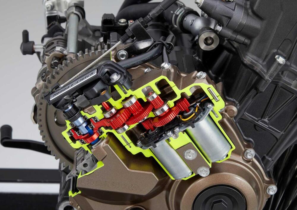 Semplicemente in Honda hanno pensato a come rendere più semplice ed efficace il cambio marcia, sia per venire incontro ai neofiti che per garantire maggiore confort ed efficacia nella guida. il sistema si compone di un cambio tradizionale, una frizione tradizionale (con annessa leva al manubrio sinistro), quello che cambia è che con un aggravio di peso di circa 2 kg si può avere come optional di fabbrica - quindi non è possibile averlo successivamente all'acquisto - la frizione elettronica che non fa altro che pensare a tutto, dato che con l'E-Clutch non è più necessario utilizzare la leva della frizione per partire, fermarsi o effettuare una cambiata o una scalata.