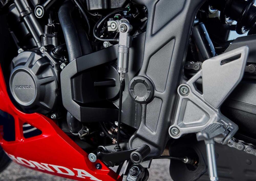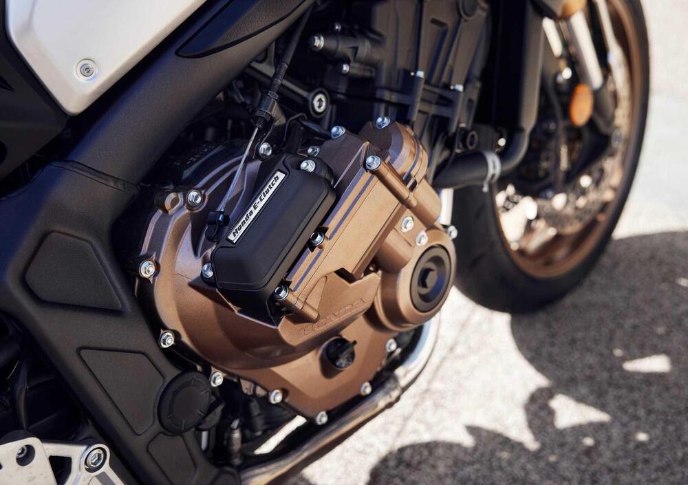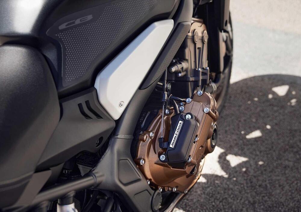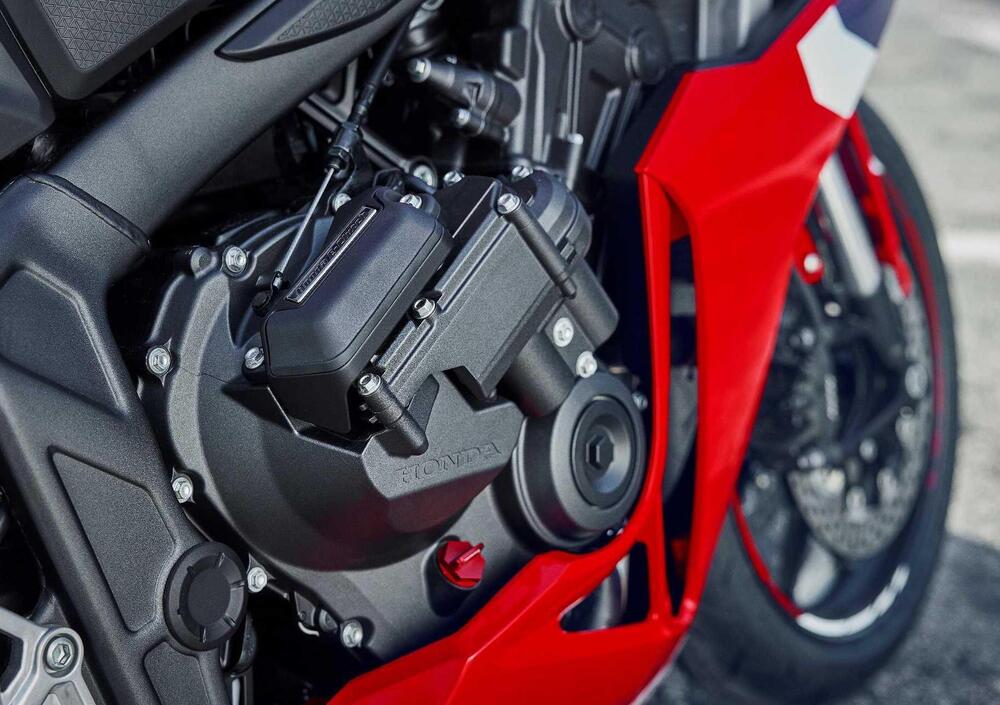 Il quattro cilindri DOHC a 16 valvole da 649 cc ottiene l'omologazione Euro 5+ senza ritoccare la potenza massima di 95 CV a 12.000 giri/min, tuttavia per il 2024 riceve qualche modifica di dettaglio: la sportiva vanta nuovi condotti RAM che portano un incremento della potenza del 5% alle alte velocità rispetto alla CB650R e viene dichiarata per tutte un'erogazione più sostenuta ai medi regimi; la coppia massima di 63 Nm è erogata a 9.500 giri/min (stesso valore ma ottenuto 1.000 giri/min più in alto rispetto al 2023) ed è disponibile una versione d 35 kW per possessori di patente A2. Tra le sue peculiarità troviamo i pistoni con mantello asimmetrico per ridurre gli attriti e la razionale rete di passaggi interni del liquido di raffreddamento dalla testata ai cilindri che permette di rinunciare a gran parte dei manicotti esterni.