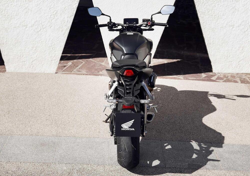 Il modello 2024 invece viene decisamente rivisto nel design e nella dotazione: sono nuovi il gruppi ottici (quello anteriore e quello della CB1000R), i convogliatori del radiatore, il codone, le selle di pilota e passeggero e viene introdotta la strumentazione TFT da 5" (grazie al quale c'è il supporto con la connettività attraverso il sistema Honda RoadSync) e il nuovo blocchetto elettrico retroilluminato di sinistra. Il risultato sono linee più affilate con la piacevole, per chi scrive, citazione delle quattro cilindri di qualche tempo fa nell'evocativo giro dei collettori di scarico che resta protagonista della vista frontale. Spariscono in nome della pulizia delle linee e del risparmio di peso le maniglie passeggero posteriori, sostituite da una cinghia e qualche upgrade viene riservato al motore e alle, come potrenbte leggere più avanti. Ultima, ma decisamente epocale, innovazione per il modello 2024 è la possibilità di avere la frizione elettronica E-Clutch della quale parliamo più avanti.
