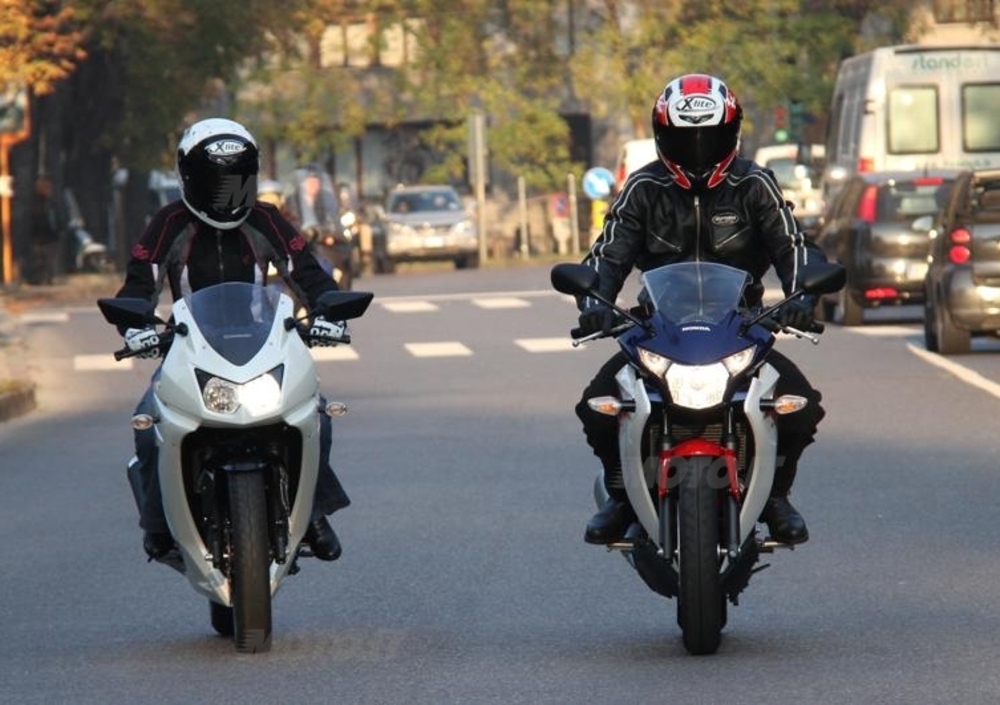 Stesse pecurialità della CBR, che vince forse per maneggevolezza, ma sulla Kawa l'impostazione di guida è più turistica: anche qui la sella è a 780 mm da terra, ma il manubrio e le pedane sono più alti e la posizione risulta quindi più eretta e accogliente anche per i più alti. Entrambe le duemmezzo passano l'esame dell'ergonomia in sella, con posizioni differenti sui due modelli, ma sempre comode e mai esasperate. Al gusto del guidatore, quindi, la scelta.