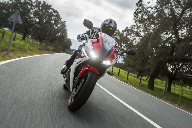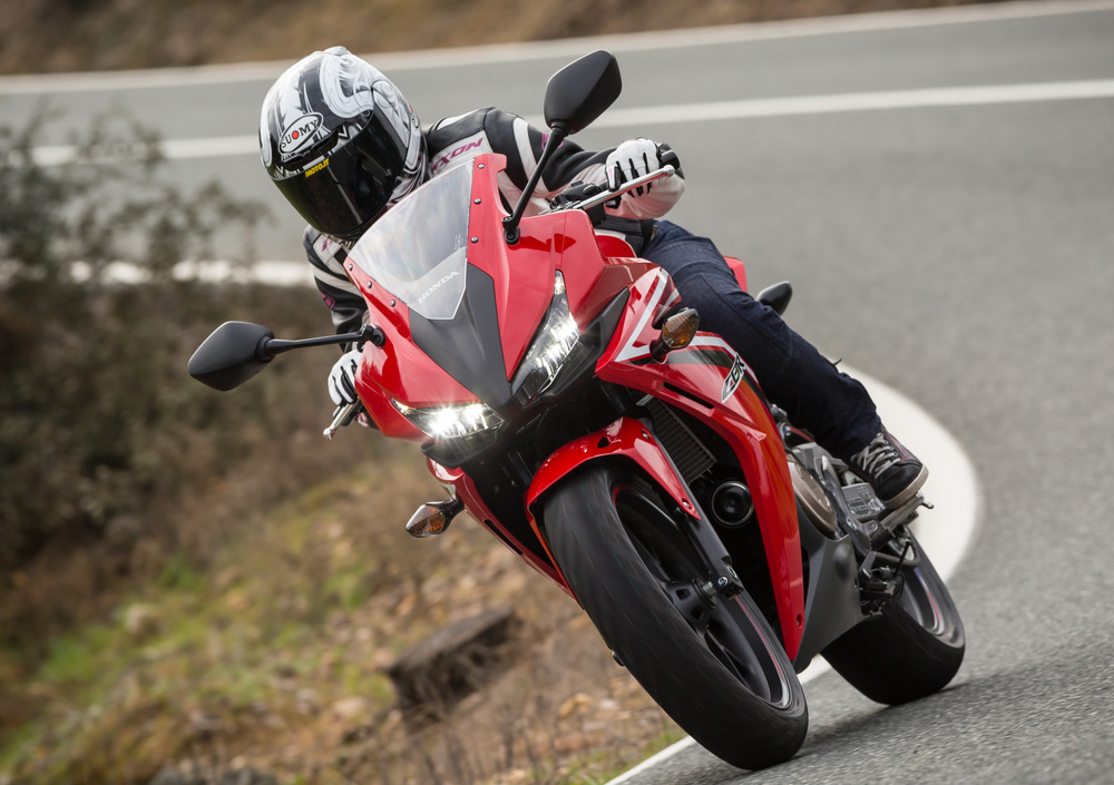 La posizione in sella è comoda per tutti: la seduta è molto bassa ma la posizione delle pedane non intacca la comodità dei più alti. I semimanubri larghi e alti risultano facili davvero in ogni condizione e il cupolino, allungato rispetto alla precedente versione, protegge anche alle alte velocità, rendendo la CBR perfetta anche per qualche gita fuori porta.