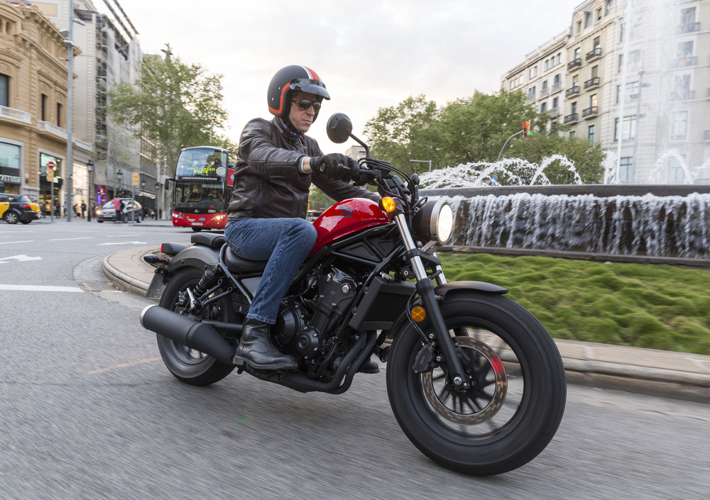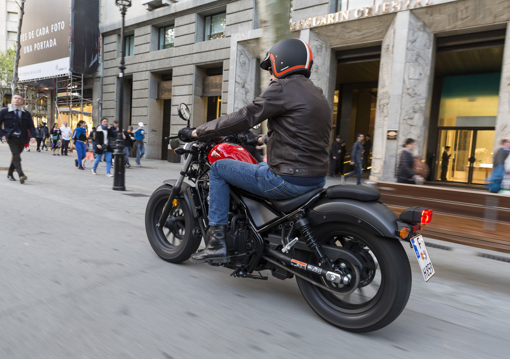 Rispetto alla categoria è buona anche la possibilità di inclinazione in curva prima di toccare con le pedane. Naturalmente serve una guida fluida e rotonda per divertirsi e la stabilità sulle strade in buone condizioni è eccellente: ci si ritrova a guidare spediti senza impegno e con buona soddisfazione. Se il fondo è invece ondulato il retrotreno oscilla un pochino dando qualche piccolo movimento anche al manubrio. Ma parliamo sempre di ritmi di guida piuttosto allegri e poco consoni allo stile di questo genere di moto. Ciò che più conta è che la Rebel passa buona emozioni e mostra un comportamento di guida sempre sicuro: è una moto facile anche per i neofiti e divertente da usare nel misto.
