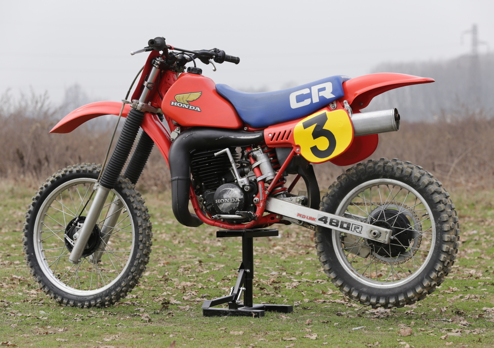 La Honda CR480R dispone della catena a destra e dell'avviamento - complicatissimo - a sinistra. Ha due freni a tamburo, monoammortizzatore con sistema Pro-link (arrivato nel 1981) e un classico telaio tubolare in acciaio, che non abbandonerà mai la CR di massima cilindrata (mentre il bitrave in alluminio arriverà sulla CR250R nel 1997). Il motore di 472 cc è raffreddato ad aria, ha 5 marce e circa 51 cv a 6.400 giri. La moto è ancora oggi facile a livello di telaio, grazie alla stabilità ottima e al bilanciamento preciso nei salti. Il motore dà tutto e subito, mura presto in allungo, ma consente di usare le marce lunghe anche nelle curve strette. Qui è solo necessario tenere salde almeno due dita sulla leva della frizione, per evitare spegnimenti drammatici (sì, perché mettere in moto la belva non è proprio semplicissimo). Alle prestazioni imperiali del motore fa da contraltare la frenata mediocre del tamburo anteriore. Occhio ai lunghi in fondo al rettilineo.
