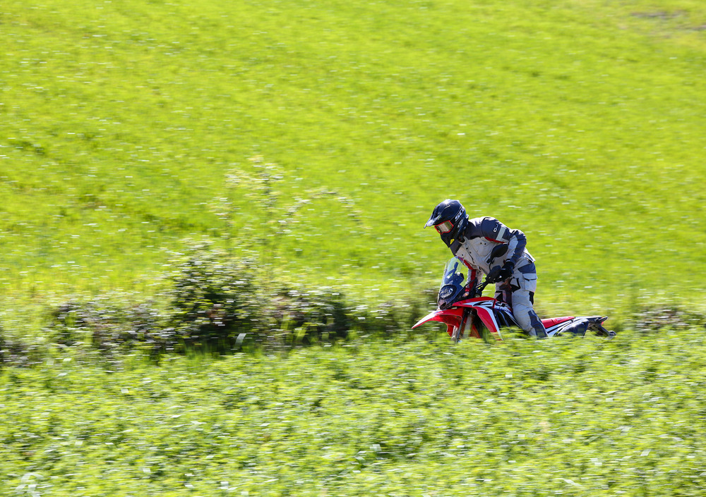 In offroad la Rally si trasforma e incasella un sacco di voti alti. Le sospensioni, che ci erano parse morbide, sono ora un cuscino d'aria che fa scorrere la 250 a velocità elevatissime senza contraccolpi. La forcella non è regolabile, ma vanta una risposta idraulica che tante enduro racing potrebbero invidiarle. La frenata è sempre ben gestibile, mentre il motore è fluido, regolare e dà tanta trazione. Non risponde mai con cattiveria, ma non si tira indietro nemmeno davanti alle mulattiere più ripide.