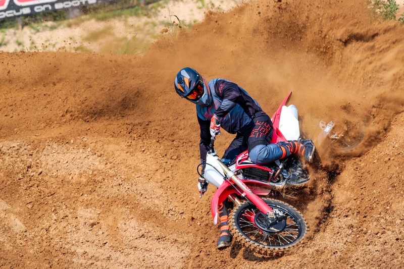 La nuova impostazione termica ti permette una guida più fluida e che stanca meno e di conseguenza ti fa divertire di più, sfruttando la nuova schiena che i giapponesi sono stati in grado di far saltar fuori dalla nuova termica. Il flow della nuova 250 influisce positivamente sulla ciclistica che, in abbinamento agli upgrade della 450 risulta ora più stabile e precisa, con meno trasferimenti di carico all’anteriore a tutto vantaggio dell’inserimento.