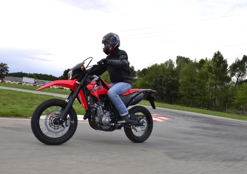Il propulsore si dimostra abbastanza pieno sin dai bassi regimi (è pur sempre un piccolo mono di 250 cc), oltre che incline ad allungare. Così deve essere una moto rivolta ai giovani, deve cioè avere un bel carattere trasversale capace tanto di divertire sulle strade tortuose quanto di muoversi in città grazie a un peso contenuto e a uno sterzo elevato. Quel che serve per divertirsi c’è insomma e basta ruotare il polso destro per accorgersene, ma la parte dell’attore protagonista in questa moto non vuole essere recitata dal motore, bensì dall’agilità in tutte le situazioni. Saltare da un cordolo all’altro è un piacere e immaginiamo facilmente quale sorriso riesca a strappare al pilota su una bella strada tortuosa di montagna, mentre in fase di inserimento in curva apprezziamo il funzionamento dell’impianto frenante, che si dimostra modulabile e potente, anche se un filino di mordente in più nella fase finale della frenata non avrebbe guastato.