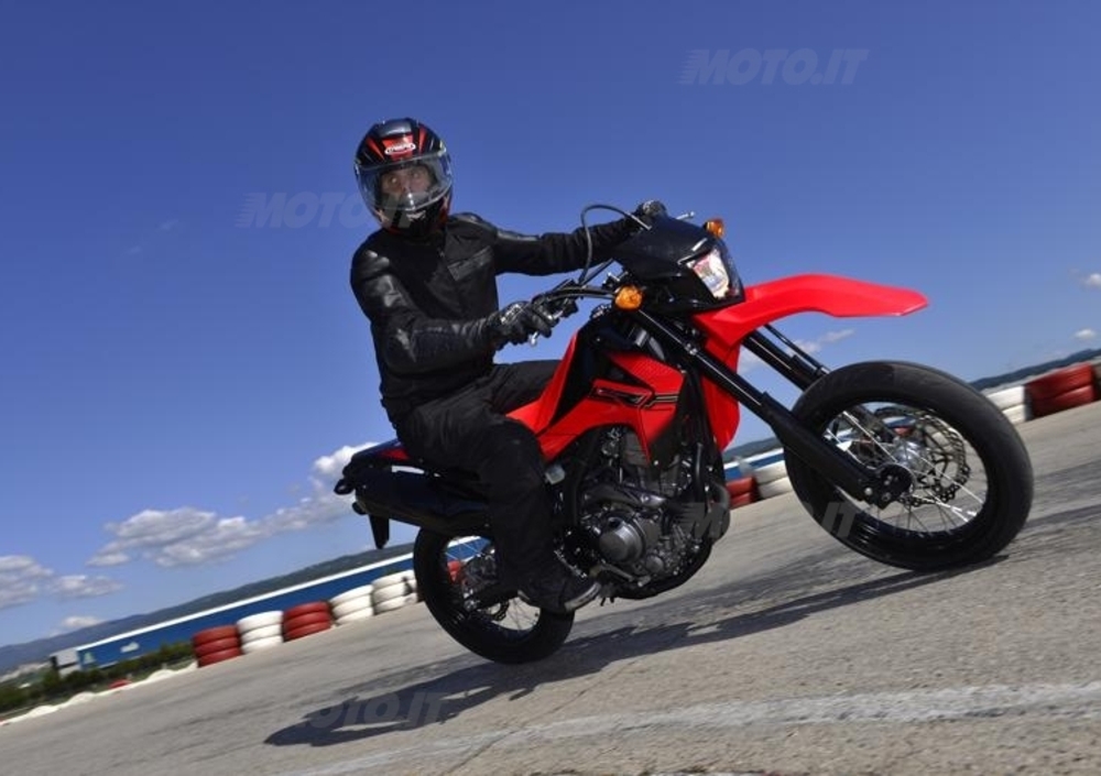 Supermotard. Uno sport estremo, caratterizzato da moto ruvide, un po’ bastarde che scalpitano e che si fatica molto spesso a tenere a bada. Ma deve per forza essere sempre così? No, non bisogna essere dei Ruben Xaus della situazione per potersi divertire con questa tipologia di moto. Honda è d’accordo con noi e presenta la CRF250M, una supermotard facile e intuitiva, capace di regalare comunque tanto divertimento proprio grazie al suo carattere amichevole. Pensata per un pubblico giovane che la userà tanto in città, la Honda CRF250M rappresenta la versione a ruote non tassellate della CRF250L. Arriverà nelle concessionarie ad un prezzo ancora da ufficializzare, ma che dovrebbe aggirarsi intorno ai 4.600 euro F.C. (circa 100 in più rispetto alla variante da enduro).