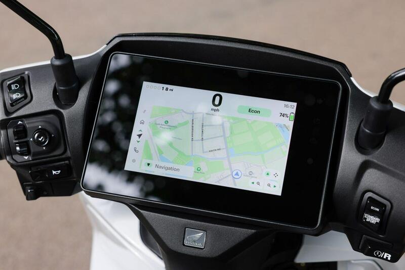 Il collegamento con lo smartphone avviene tramite il sistema Honda RoadSync Duo, che si interfaccia con la bella strumentazione TFT da 7 pollici, sempre ben leggibile in qualsiasi condizione di luce. Oltre alla navigazione e alle notifiche di chiamate e messaggi, lo schermo mostra l’orario di arrivo stimato alla destinazione impostata e persino la percentuale di batteria prevista all’arrivo, per pianificare al meglio i percorsi e le eventuali ricariche.