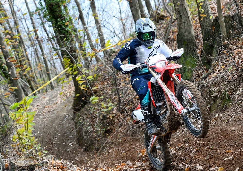 Hanno serbatoi più grandi (e finalmente trasparenti, l'anno scorso erano neri), motori e sospensioni addolciti nelle tarature e una rapportatura del cambio a 5 rapporti perfetta per le mulattiere e i trasferimenti. Non mancano le mappe motore (3), l'avviamento elettrico, la ventola di raffreddamento e persino il launch control, utile a chi corre. Ragazzi, questo è però solo l'antipasto. Sì, perché il distributore italiano Redmoto non si limita a... distribuire, ma crea. In pochi mesi di intensi collaudi sono state infatti sviluppate altre due versioni: la CRF300RX (derivata dalla bialbero 250) e la CRF400RX (derivata dalla Unicam 450). Sono moto destinate al pubblico esperto, ma meno interessato alle gare. La 400 in particolare smorza il picco di potenza della 450, che in pochi anni s'è fatta la fama di essere una vera belva (forte di quasi 60 cavalli).