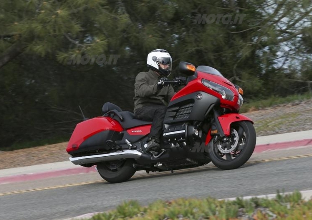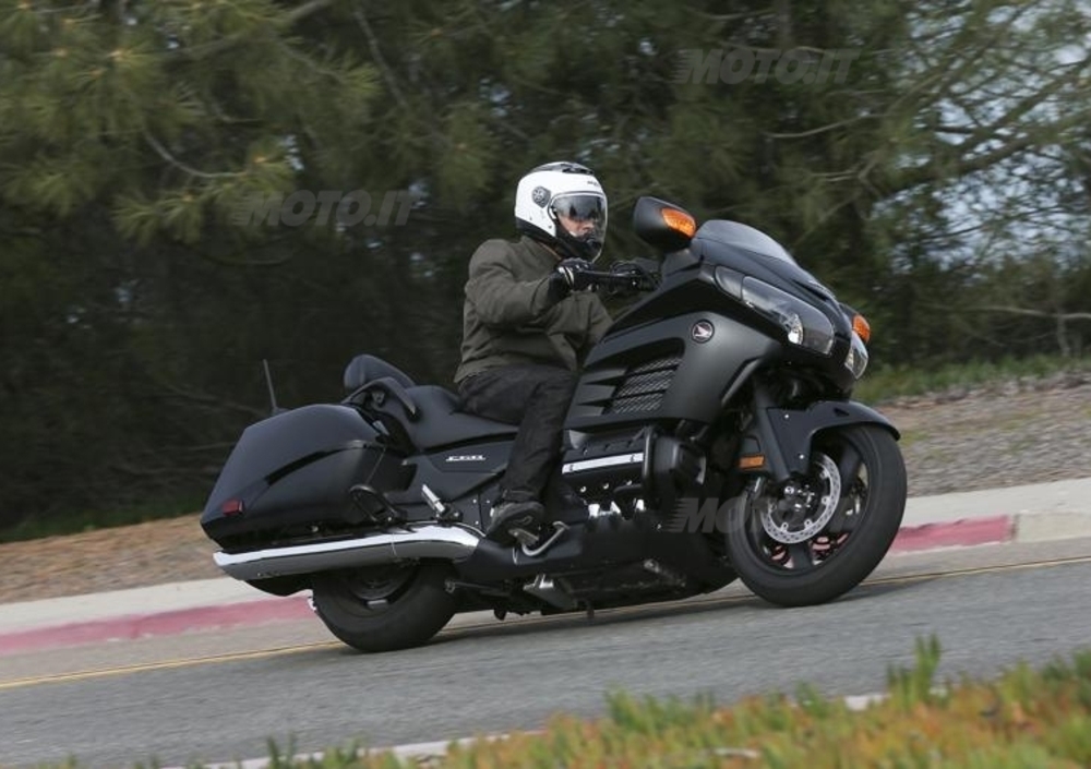 Siamo sicuri che avrete quasi tutti alzato un sopracciglio al sentir parlare di misto. Ripensate però al discorso di cui sopra e aggiungeteci questo: Honda ha tolto ben 28kg, passando dai 413kg della Goldwing ai 385 della F6B, eliminandoli quasi tutti dalla parte alta della moto e dunque abbassando ulteriormente il baricentro già rasoterra della GW "standard". Sono infatti spariti il top box (-20kg), il parabrezza alto ma anche diversi altri dettagli a livello di finiture, oltre al pesante (ma comodissimo) sistema di retromarcia comandato dal motorino elettrico. La riduzione della sezione frontale dovuta all'eliminazione del parabrezza ha inoltre l'effetto di migliorare la maneggevolezza grazie alla minor resistenza aerodinamica nei cambi di direzione.