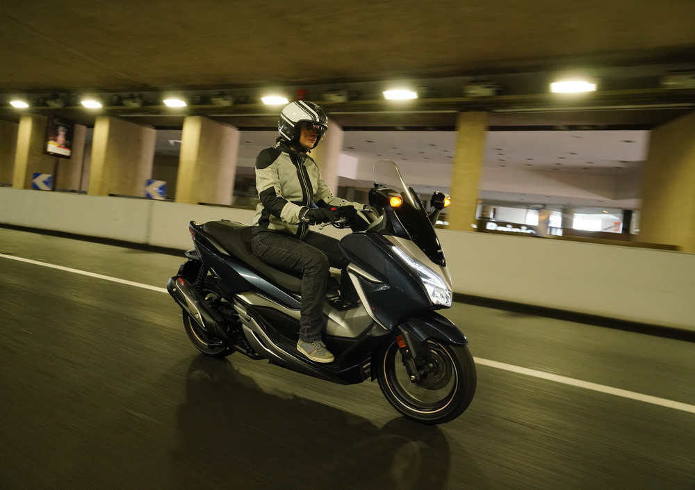 Una volta in sella al Forza non possiamo che notare, prima ancora delle belle finiture che lo caratterizzano, la comodità della seduta e della posizione di guida, anche in due. Certo sulla carta non è leggerissimo, ma si lascia condurre facilmente anche nel traffico e anche le manovre a bassa velocità non sono un problema.