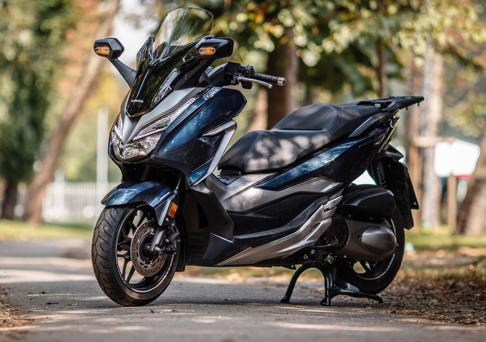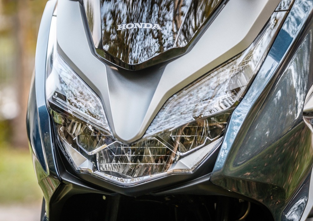 Il Forza è stato rivisto nell’estetica, con una linea decisamente più moderna e sportiva, con particolare attenzione al gruppo ottico (naturalmente full-LED) che mantiene un netto family feeling Honda. I lampeggiatori montati sugli specchietti sono più visibili e, come su tutte le Honda Euro-4, svolgono funzione di luci di posizione aggiuntive. Le linee più tese non sacrificano la protettività, che anzi migliora anche grazie al parabrezza a regolazione elettrica continua (quindi senza “scatti” predefiniti) con 10 cm di escursione.