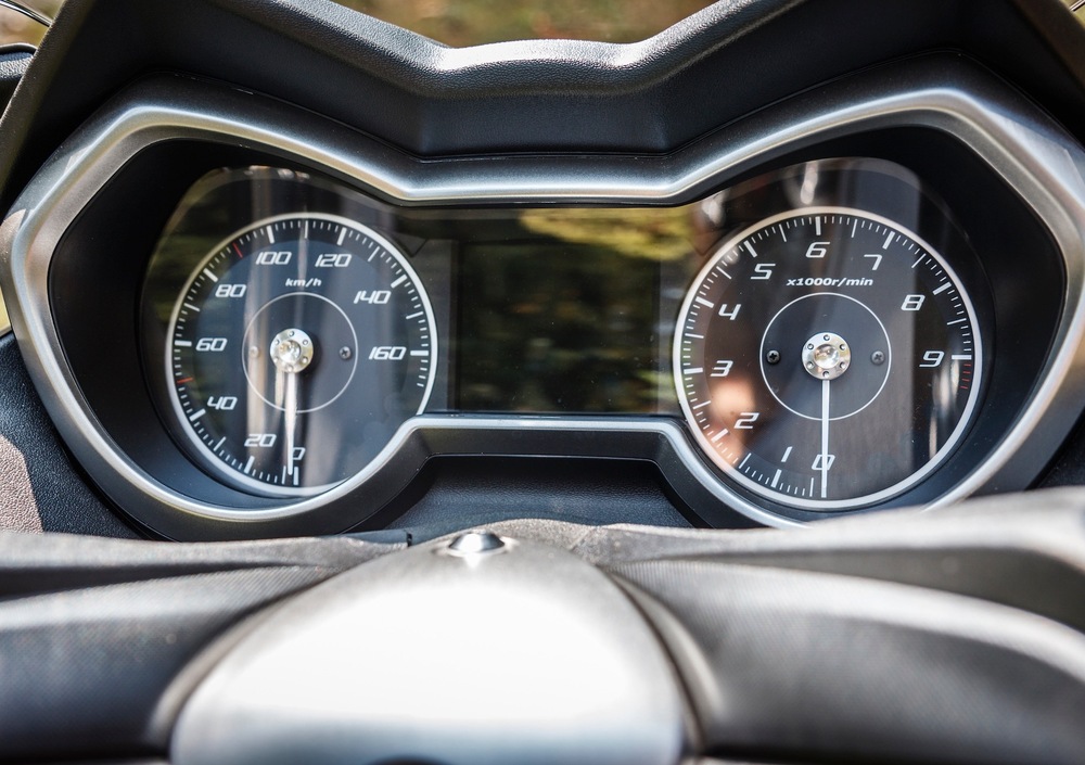 L’ispirazione, dicevamo, è quella del T-MAX, con il tipico boomerang che caratterizza la vista laterale dello scooter. La dotazione luminosa è tutta full-LED, con due anabbaglianti anteriori più l'abbagliante al centro, e doppio gruppo ottico posteriore. Somiglianze anche per la strumentazione, con strumenti a visualizzazione analogica che incorniciano un pannello LED al centro, con tutte le informazioni di servizio.