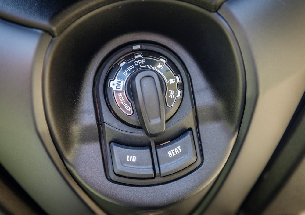 Restando in tema praticità, cresce anche fino al limite di 53,5 litri la capienza del sottosella, che riesce quindi a contenere due caschi integrali e diversi altri oggetti di piccole dimensioni. Un miglioramento che però sposta l’altezza della sella a 780 millimetri, penalizzando un po’ i più corti di gamba. Basta comunque attestarsi sul metro e sessantacinque per toccare bene coi piedi a terra, grazie alla giusta svasatura in zona interno coscia. E poi c’è il pressoché immancabile vano nel retroscudo, completo di presa 12V per cellulari, lettori MP3, navigatori e quant’altro.