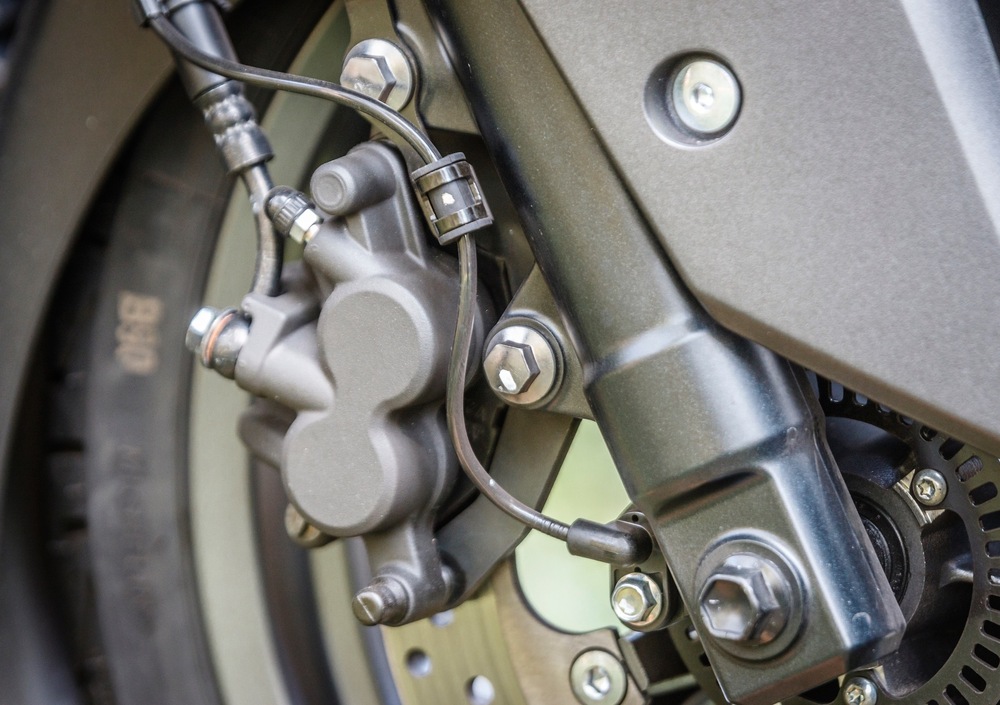 Le sospensioni contano su una forcella con steli da 33mm e un doppio ammortizzatore posteriore regolabile nel precarico (sette posizioni) azionati da un forcellone in alluminio. I cerchi crescono di un pollice, passando dall’accoppiata 14-13” al 15-14” calzanti pneumatici Pirelli Diablo Scooter nelle misure 120/70 e 140/70.Capitolo freni: l’impianto conta su una coppia di dischi, con l’anteriore da 256 millimetri e il posteriore da 240, naturalmente gestiti dall’ABS di serie.