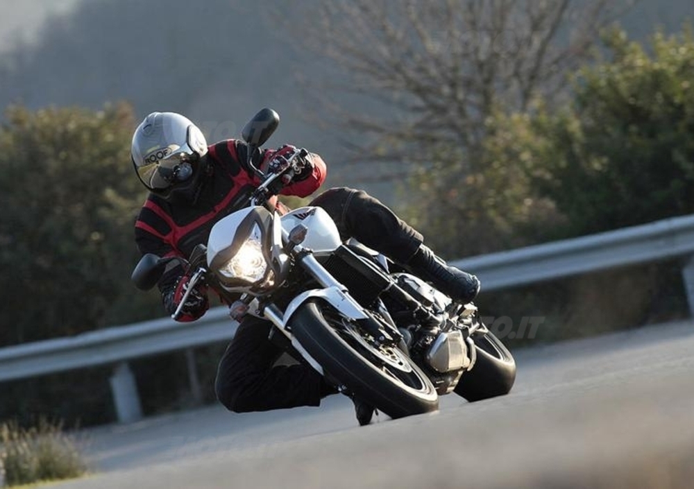 Il comportamento dinamico della nuova Hornet ricalca chiaramente quello della versione uscente. Grazie al suo ottimo equilibrio generale, la bella naked italiana con gli occhi a mandorla è davvero facile per tutti: una di quelle moto in sella alle quali, al cospetto di una bella e lunga strada tutta curve, non vorresti mai fermarti, anche perché guidandola si fatica poco o nulla, e ci si diverte come bambini. Insomma, mi trovo a riciclare una frase strausata: sulla Hornet ci si sente subito come a casa, e solo forzando un po’ il passo avrei magari apprezzato pedane più arretrate di un paio di centimetri, ma proprio per cercare il classico pelo nell’uovo, visto che nell’uso promiscuo l’ergonomia è molto buona. È tutto morbido, sulla Hornet: frizione, freno anteriore, cambio, praticamente perfetto per scorrevolezza e rapidità d’azione (usando o meno la frizione, è indifferente), a parte qualche rara incertezza in scalata tra terza e seconda. Peccatuccio davvero veniale, in effetti.