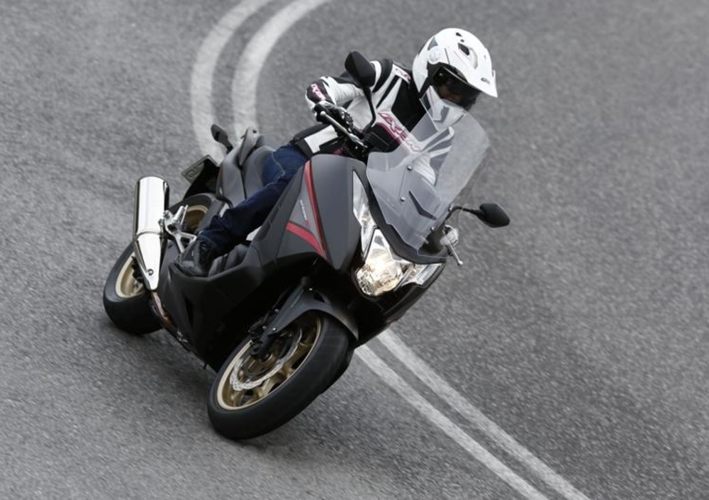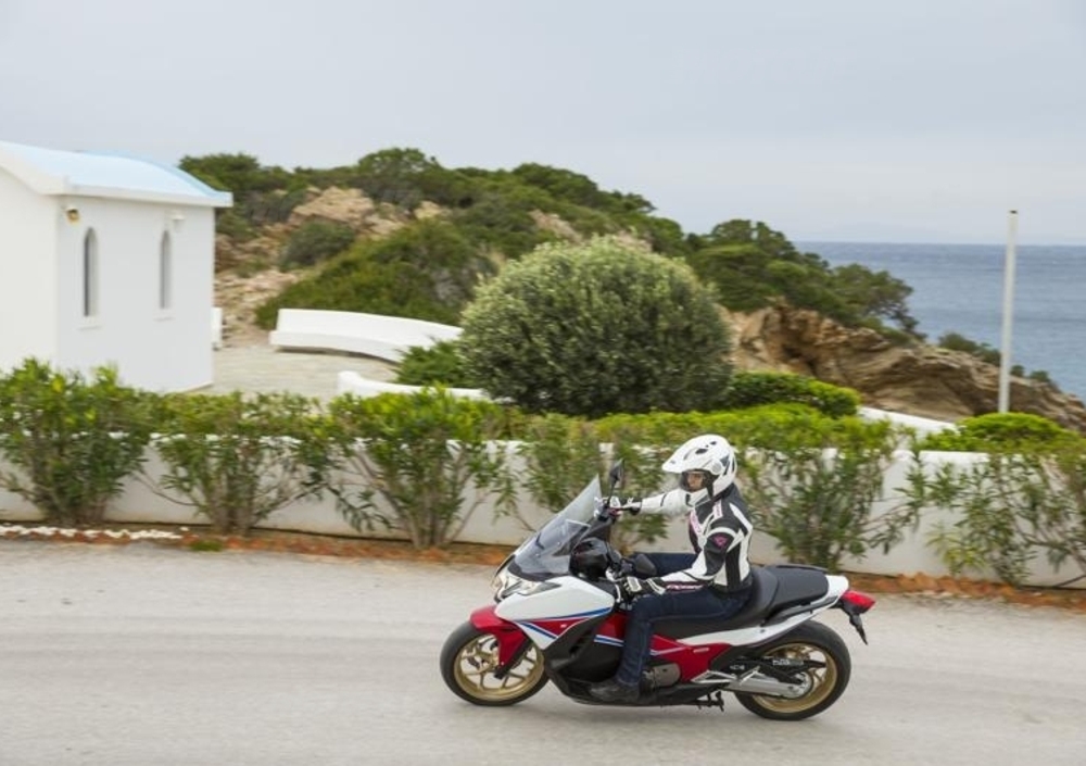 Non prettamente scooteristiche sono invece le prestazioni della ciclistica: nella guida più brillante è chiaro che si ha a che fare con un’impronta totalmente motociclistica di telaio e sospensioni, nessuna incertezza anche a velocità sostenute, una stabilità da far invidia alle migliori tourer e soprattutto una grande vocazione alla piega. L’occhio di riguardo riservato al comfort delle sospensioni, oltre che alle prestazioni sportive, fa sì che l’Integra non vada ad accusare nemmeno le sconnessioni più insidiose, costantemente presenti nei molti chilometri di test percorsi in Grecia. Promossa anche la frenata che, nonostante il disco singolo anteriore – che non convince proprio tutti – ferma il non leggerissimo settemmezzo con una buona modulabilità e prontezza, e si dimostra sicuro soprattutto per la presenza dell’ABS di serie.